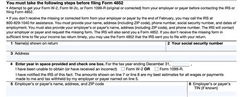 IRS Form 4852 Instructions Substitute Forms