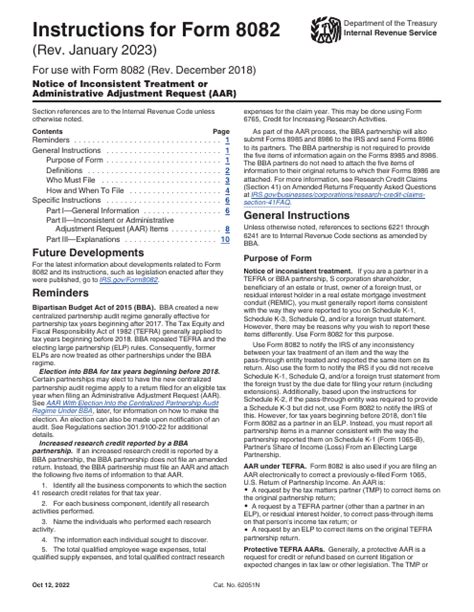 Download Instructions for IRS Form 8082 Notice of Inconsistent