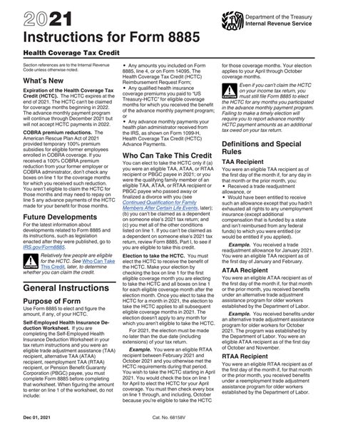 Form 8885 Instructions. Web the health coverage tax credit (hctc) was a refundable tax credit that paid 72.5% of qualified health insurance premiums for. Web instructions for form 8885 (2021) health coverage tax credit section references are to the internal revenue code unless.