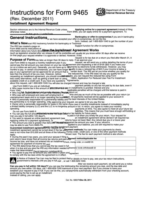Instructions For Form 9465 (Rev. December 2012) printable pdf download