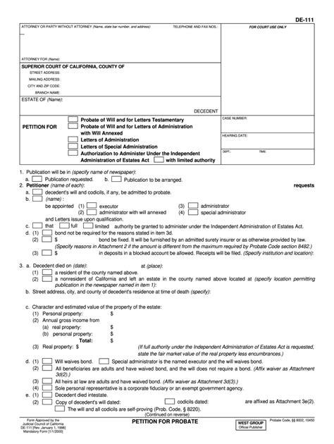 DE111 The Only Form You Need to Begin a California Probate Hassell
