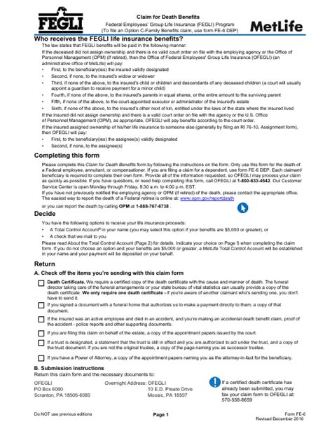 Form Fe 6. Web claim for death benefits. Used to claim benefits for the death of anyone enrolled in the fegli program.