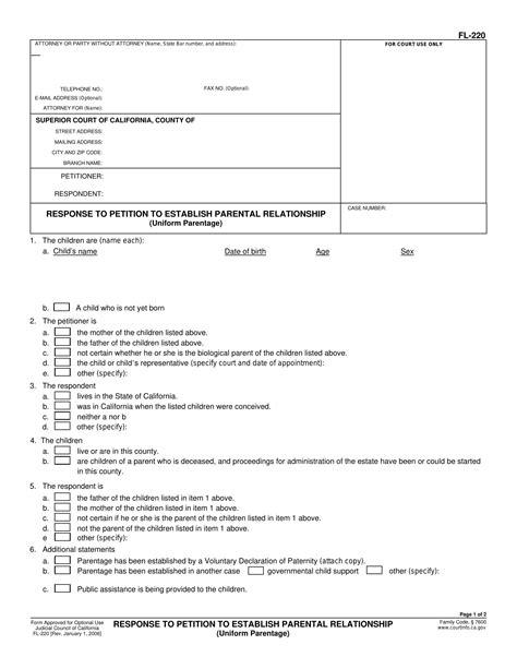 Form FL220 Download Fillable PDF or Fill Online Response to Petition