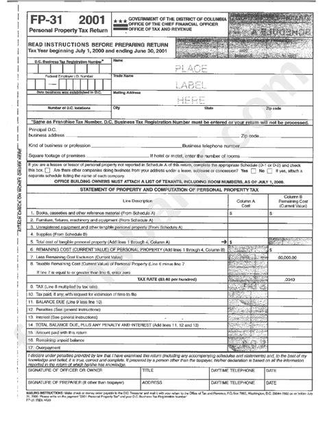 Form Fp-31. You must file and pay electronically through mytax.dc.gov. Generally, every individual, corporation, partnership, executor, administrator, guardian, receiver, trustee (every entity) that owns or holds tangible personal property in trust must file a.