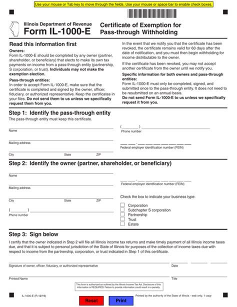 Fillable Form Il1000 PassThrough Entity Payment Tax Return