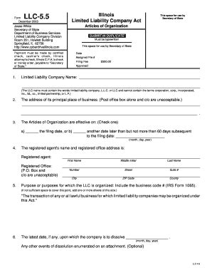 Form Llc 5.5. Secretary of state jeeae white. Illinois limited liability company act.