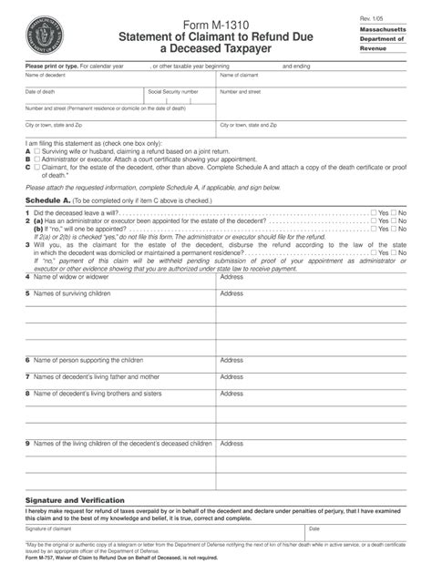 Form M-1310 Instructions. Web information about form 1310, statement of person claiming refund due a deceased taxpayer, including recent updates,. Statement of person claiming refund due a deceased.