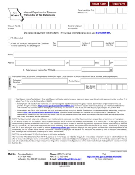 Form Mo W-3. For optimal functionality, save the form to your computer before completing or printing. The transmittal of tax statements is due on or before the last day of do not include the.