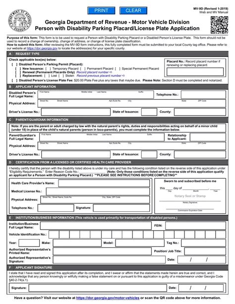 Form Mv 9D. Disabled persons parking permit form. Instructions are included on the form.