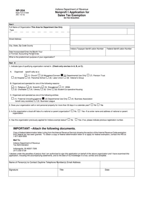 Form Np-20A. Web indiana department of revenue nonprofit application for sales tax exemption no fee required.
