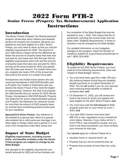 Download Instructions for Form PTR2 Senior Freeze (Property Tax