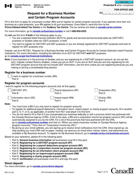 This form is used to register for a business number and the 4 major cra accounts, gst, payroll, corporate and import/export. Before any retention periods can be considered in effect they need to be submitted through the. Once you have completed the form, mail or fax it to. This form is used to register for a business number and the 4 major cra accounts, gst, payroll, corporate and import/export. Web rc1 request for a business number and certain program accounts. Web to print a form, go to form rc1, request for a business number and certain program accounts, or, to order a form, go to forms and publications.