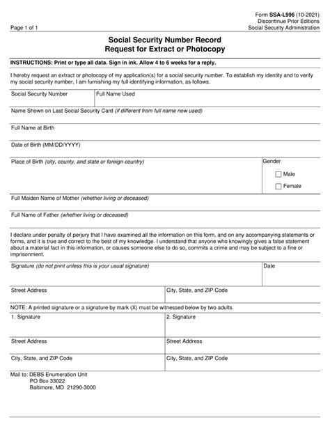 Form Ssa L996. Please submit your request with payment to: Web if a third party (a local or state agency) sent the individual to the fo to obtain verification of their ssn, obtain.