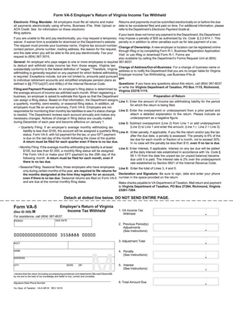 Form Va 5. Annual / final withholding reconciliation: Eforms, business account or web upload.