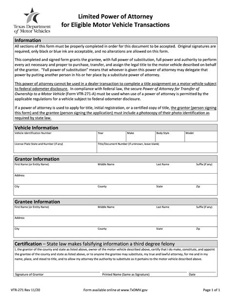 texas motor vehicle power of attorney vtr 271 PDFSimpli