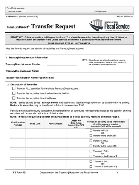 Fs Form 5511. For an account in treasurydirect, use this. Web open the link for fs form 5511, treasurydirect transfer request. fill out the required information and follow the.