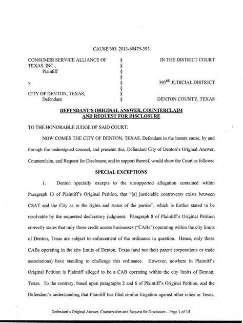 I request notice of all hearings in this case. Web a sample general denial recently used by our law firm is detailed below. A general denial makes certain that the plaintiff must prove all of the allegations in their lawsuit. Talk to a lawyer before filling out this form. Give a copy to your spouse. Web in texas, a general denial is a defendant's answer that denies each allegation in a plaintiff's lawsuit. You may accidentally give up important legal rights if you file this form with the court without first talking to a lawyer. File (turn in) the original signed form to the court where your spouse filed the original petition for divorce. Web fill out this form completely. General denial defendants deny each and every allegation of plaintiff’s original petition, and demand strict proof thereof.