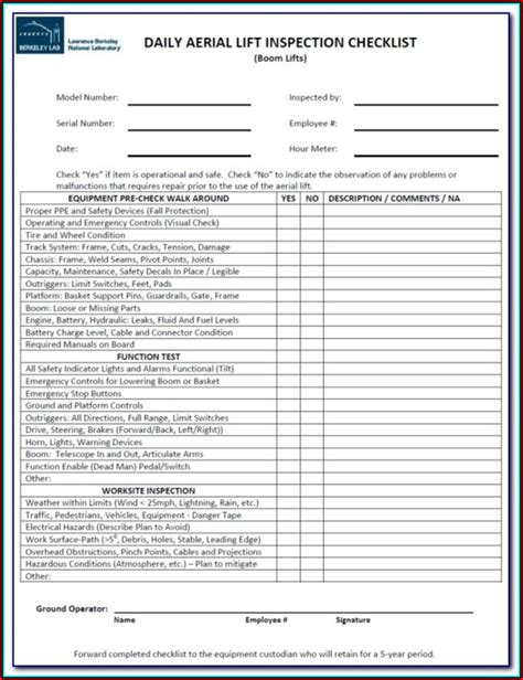 Genie Aerial Lift Annual Inspection Form Form Resume Examples Gambaran