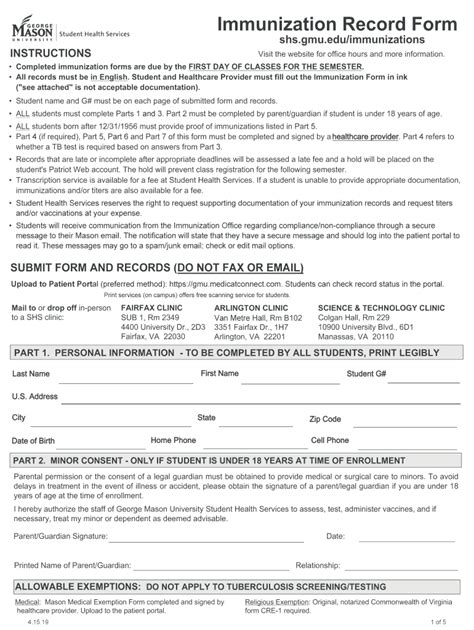 George Mason Immunization Form. Web mason immunization record form (pdf) certificate of medical exemption for immunizations requirements (pdf). Web submit form and records (do not fax or email) upload to patient portal (preferred method):.