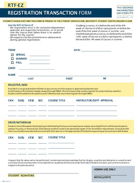 Gwu Rtf Form. It requires an instructor's signature for registration of closed courses and courses. Web students are not able to withdraw past the 10th week of classes through gweb.
