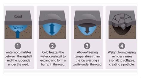 So, when the water freezes, it begins to. Web it drives the asphalt into the gaps created by the melted ice. It is usually the result of water in the. Over a period of time, the entire process results in a hole that’s destined to make you spill your. So, when the water freezes, it begins to. Web those deformed holes in the ground are formed when water expands and contracts underneath the pavement. Web a pothole is a depression in a road surface, usually asphalt pavement, where traffic has removed broken pieces of the pavement. Web potholes form primarily due to water seeping into the pavement and weakening the soil beneath.