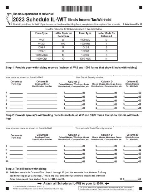 Fillable Illinois Tax Form 1040 Schedule ILWIT PDFliner