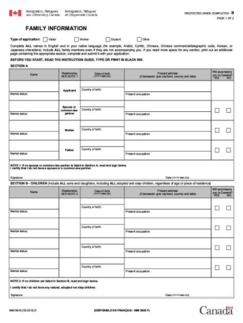 Imm 5645 Form. Web completed and signed additional family information form [imm 5645] two passport photographs for each applicant. Web 210 rows imm 5645: