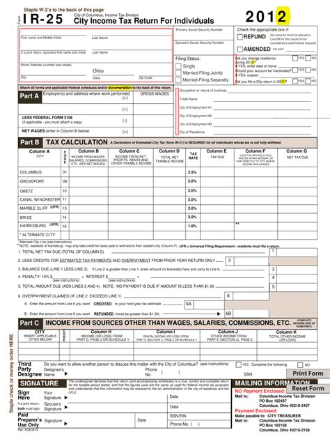 Fillable Online Instructions for Form IR25 Columbus Fax Email Print