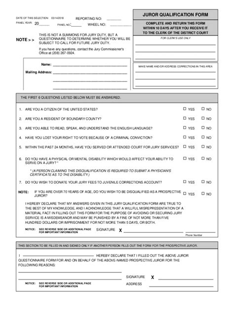 Juror Qualification Form. Web the form is used to obtain information about you so that we can objectively determine whether you are qualified to serve as a. Web how to complete the form.