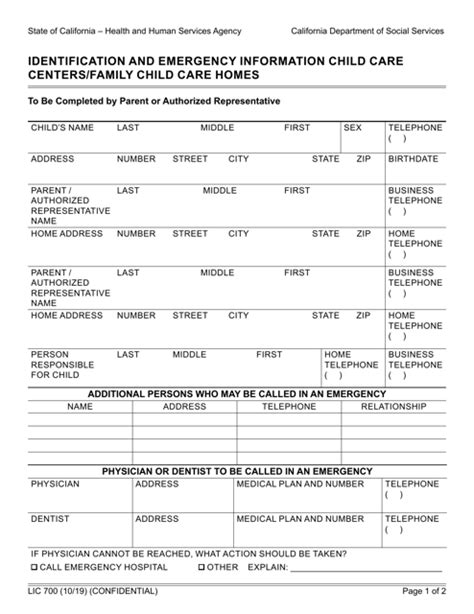 Lic 700 Form. Identification and emergency information child care centers created. Ca dept of social services subject: