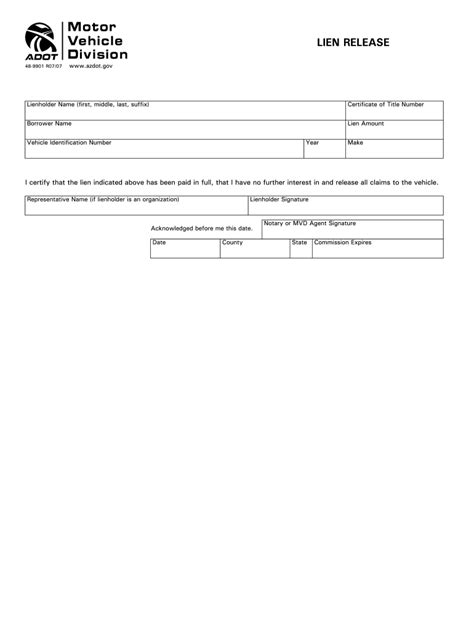 Lien Release Form Az. A description of the vehicle. The lien release, which must show: