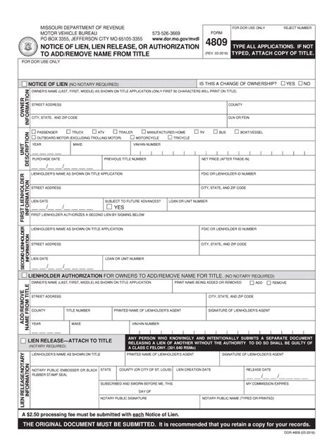 Lien Release Form Missouri. Notice of lien or lien release motor vehicle. This form may be used.