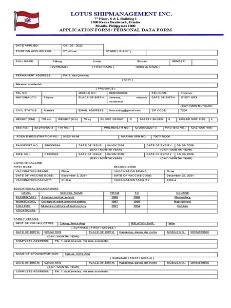 Lotus Shipmanagement Application Form. Web job application | lotus shipmanagement incorporated application form first name middle name last name rank/posistion.