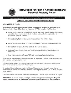 Md Form 1 Instructions. Form 1, annual report & business personal property return. The personal property tax return and important instructions can be.
