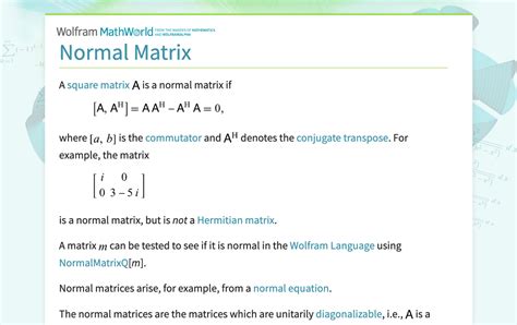 Web the smith normal form of a matrix is diagonal, and can be obtained from the original matrix by multiplying on the left and right by invertible square matrices. In particular, the integers are a pid, so one. Web the smith normal form of a matrix is diagonal, and can be obtained from the original matrix by multiplying on the left and right by invertible square matrices. An orthogonal matrix is also a normal matrix. Web the spectral theorem states that a matrix is normal if and only if it is unitarily similar to a diagonal matrix, and therefore any matrix a satisfying the equation a*a = aa* is diagonalizable.