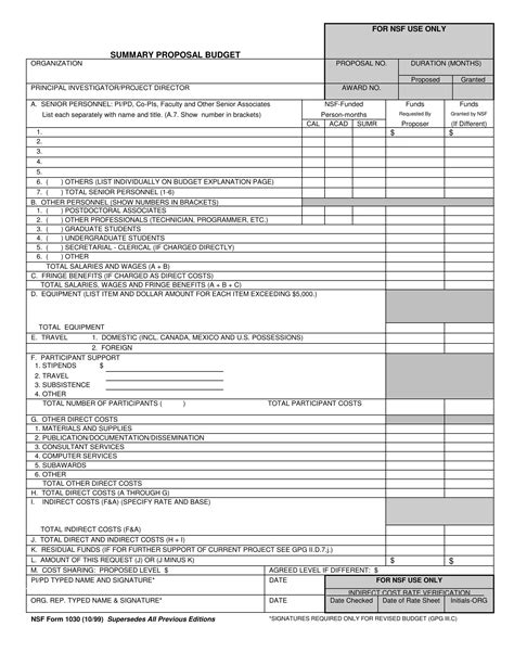 Individual forms   form 1030 summary. Web copies of nsf form 1030 and instructions may be reproduced locally. Web these files contain all the forms for proposal submission, plus instructions. Web instructions for use of summary proposal budget (nsf form 1030) general each grant proposal, including.