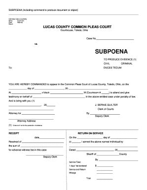 Subpoena Form Summit County Common Pleas Court printable pdf download