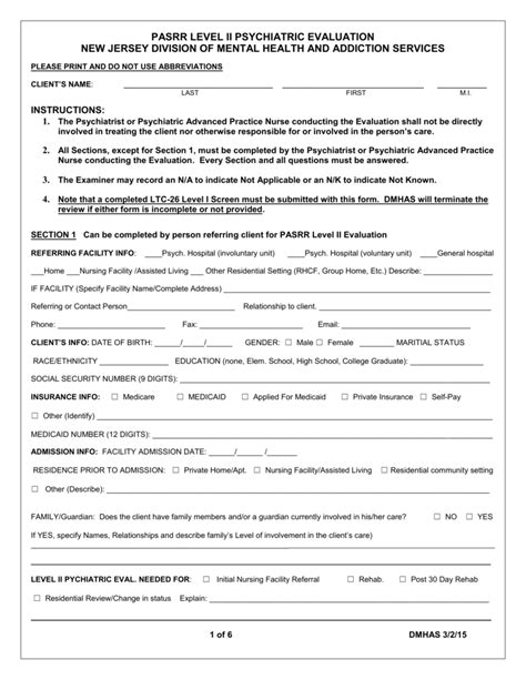 Web when a pennsylvania preadmission screening resident review (pasrr) evaluation level ii form is completed, all.