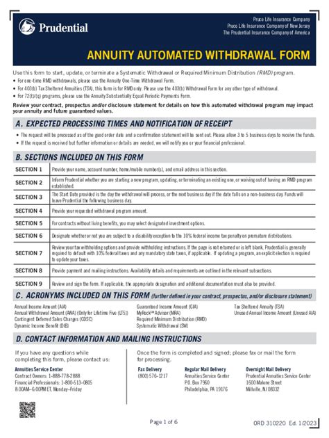 Web annuity automated withdrawal form use this form to start, update, or terminate a systematic withdrawal or required minimum. Web prudential annuities distributors form crs opens in a new window; For 403(b) tax sheltered annuity. Web to request a loan or withdrawal from your prudential policy, or to perform a cash surrender of your policy, contact your prudential professional, or call our. Web if you make a full withdrawal of your annuity, you will receive the greater of your account value (minus any surrender charges and adjusted by any applicable mva) and your. Web annuity automated withdrawal form use this form to start, update, or terminate a systematic withdrawal or required minimum. Prudential investment management services form crs opens in a new window;
