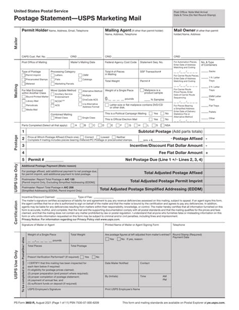 Ps Form 3602-R. This form and mailing standards are available on postal explorer at pe.usps.com. Before you complete the postage section, go to parts a through m.