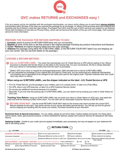 Qvc Return Form. You have 30 days to return a product you have found defective. So you send them an email with the item information and what you want it to be exchanged with.