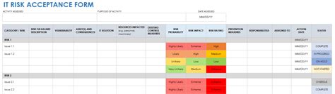 Risk Acceptance Form. The form will be stored with the. Web a risk acceptance form is a formal document that is used to officially accept a risk during a project.