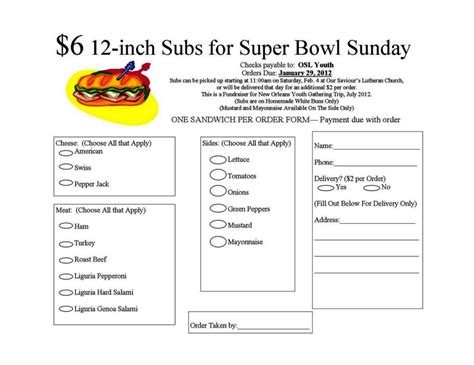 Sandwich Order Form Template SampleTemplatess SampleTemplatess