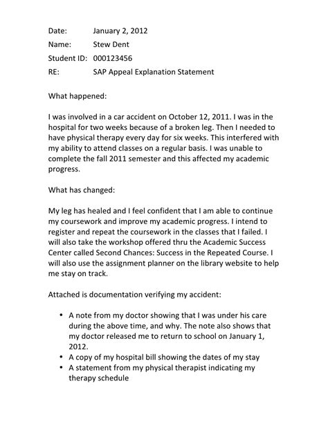 Web learn how to write a satisfactory academic progress (sap) appeal explanation statement that explains what happened, why you.
