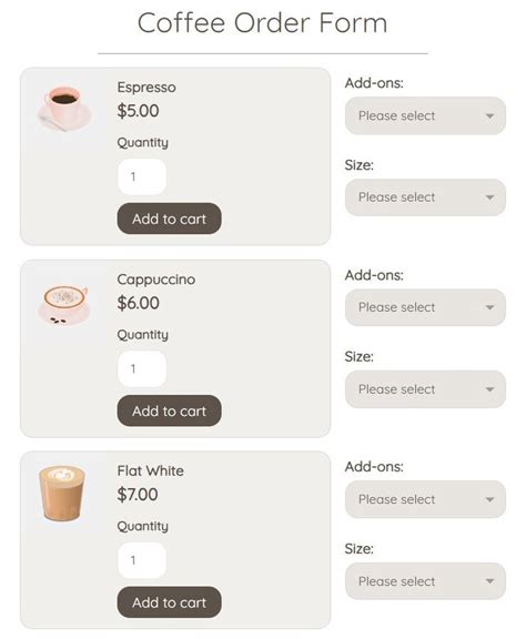 Simple Coffee Order Form. Web coffee order form template. Web coffee order form with connected inventory form.