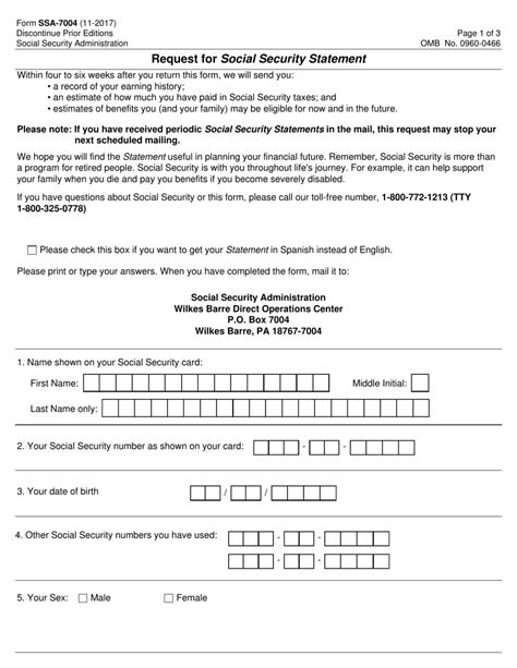 Ssa 7004 Form. A record of your earning history; An estimate of how much you.