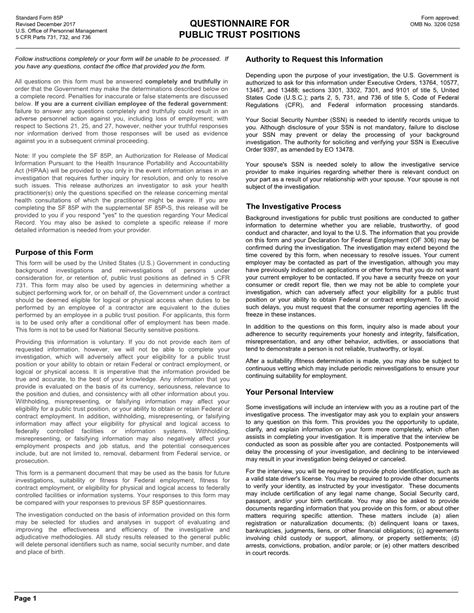 Supplemental questionnaire for selected positions: Questionnaire for public trust positions. Supplemental questionnaire for selected positions: Web 62 rows sf 85p: Questionnaire for public trust positions: