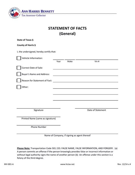 Statement Of Facts Form Texas. Web general affidavits are written statements of fact used to support your case or verify facts that are sworn to be true in. Bill of sale to a motor.