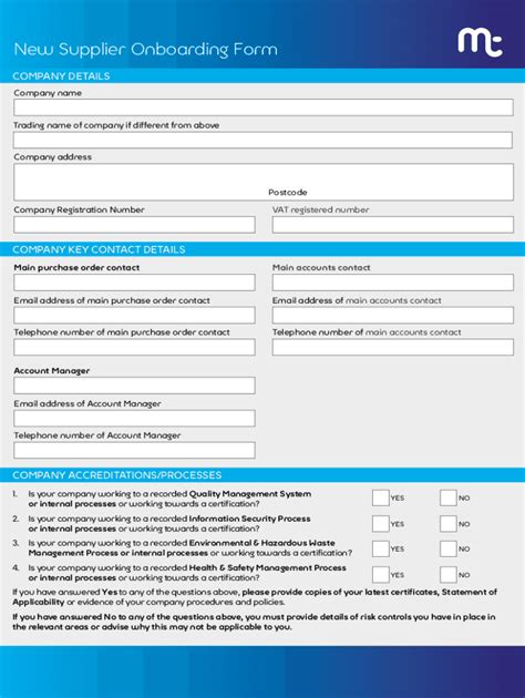 Web onboard new vendors through a form and approval process. Start a new vendor onboarding process using a form and an approval process. Web vendor onboarding — also known as supplier onboarding or supplier relationship management (srm) — is a systematic process that enables. We've created this beautiful template to simplify relationship management with your. Web supplier onboarding form template. A vendor onboarding application form is a form template designed to streamline the process of collecting necessary information from potential. Web this vendor registration form template is suitable for internal vendor documentation purposes or as a vendor application form.