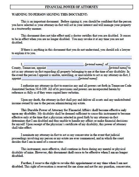 Printable Durable Power Of Attorney Form Tennessee Printable Forms